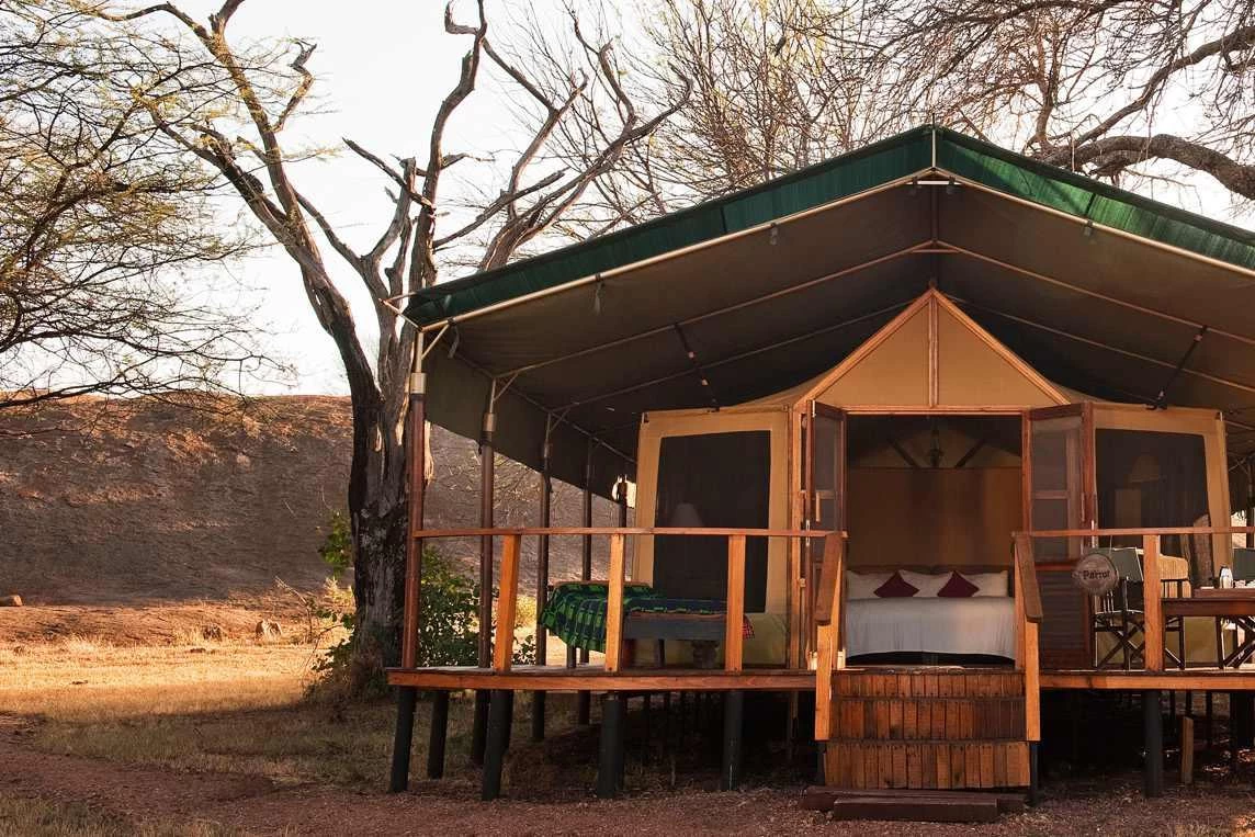 Accommodations consist of luxurious ochre tents offering true immersion in the life of 19th century explorers, upgraded with contemporary comforts. The stylish furniture, including handcrafted luggage, mid-century modern chairs and characterful cabinets, are all designed to be perfectly portable, allowing for a seamless transition as you travel through the wild. A unique and exciting feature of this camp is its bucket showers: comfortable and free-flowing with hot water, this heritage washing style adds hugely to the sense of adventure.