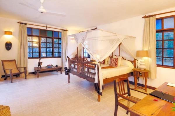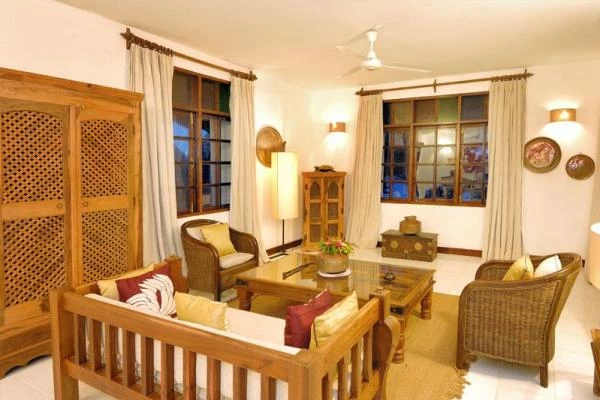 Interiors are beautifully decorated in ethnic style, with inspired use of local fabrics such as khangas, kikois and kitenges. These cloths form an elegant theme of cushioned comfort through the many secluded lounging areas, inside and out.